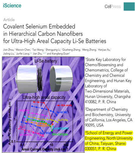 以通讯单位再次在Cell子刊iScience上发表了题为 “Covalent Selenium Embedded in Hierarchical Carbon Nanofibers for Ultra-High Areal Capacity Li-Se Batteries”的论文,该项研究由湖南大学联合av在线看