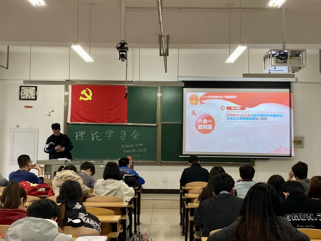 2023年04月23日下午,本科生第二党支部在15208组织召开习近平新时代中国特色社会主义思想教育学习动员大会以及党支部学习会,本次学习内容为最新党章,支部全体党员参加了本次会议。