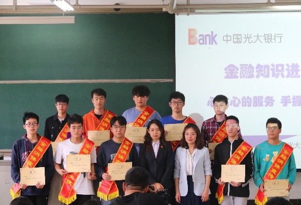 伴随着庄严肃穆的国歌奏唱讲座正式拉开了帷幕。首先中国光大银行解放南路支行大堂经理霍文婷以《金融知识进校园争做金融好网民》为题进行讲座。她为同学们科普了金融消费者的概念用轻松有趣的小视频让同学们认识到个人信息的重要性并提醒同学们要养成理性消费观念远离校园贷积极合法地保护自己的消费者权益。值此五四青年节到来之际,光大银行太原分行还聘请了10位优秀的学生担任首批校园金融消保宣传大使,在学生中传播金融知识,为学生解决实际困难。