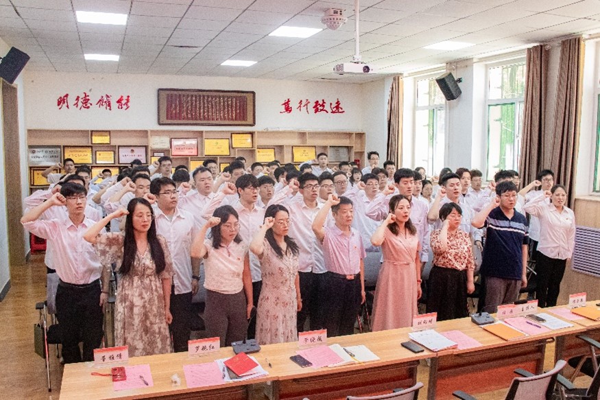 本科生党员董昊带领全体师生重温入党誓词。铮铮誓言再次让党员们感受到信仰的力量、奋斗的力量、奉献的力量,激励了党员们进一步坚定理想信念,坚守对党忠诚的政治品格。