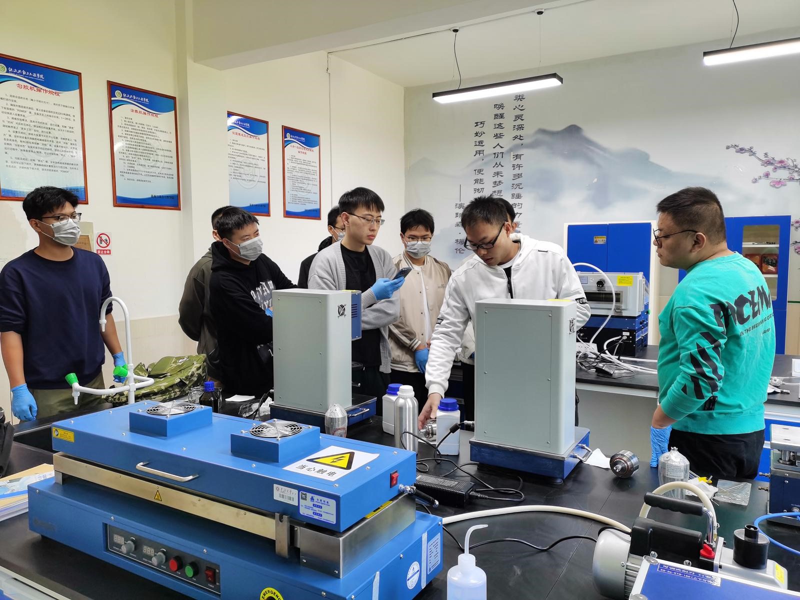 能动学院新能源电池研究团队正在对电池正负极浆料粘度进行测试