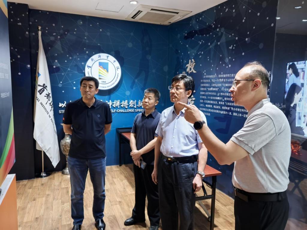 在首都体育学院,来志斌一行参观了首都体育学院校史馆与奥林匹克展馆。首都体育学院左伟副校长介绍了汉语国际推广武术培训与研究基地、中小学体育和青少年体质健康研究基地和体医工实验室。在随后的座谈中,双方在体工融合、国际交流以及项目合作等进行交流并达成合作共识。来志斌表示希望双方今后进一步加强交流合作,探索通过体工融合和项目合作等多种形式,携手攻克行业技术难题,为学校提供更多的国际交流平台,努力实现学科交叉与校际合作的无缝对接。