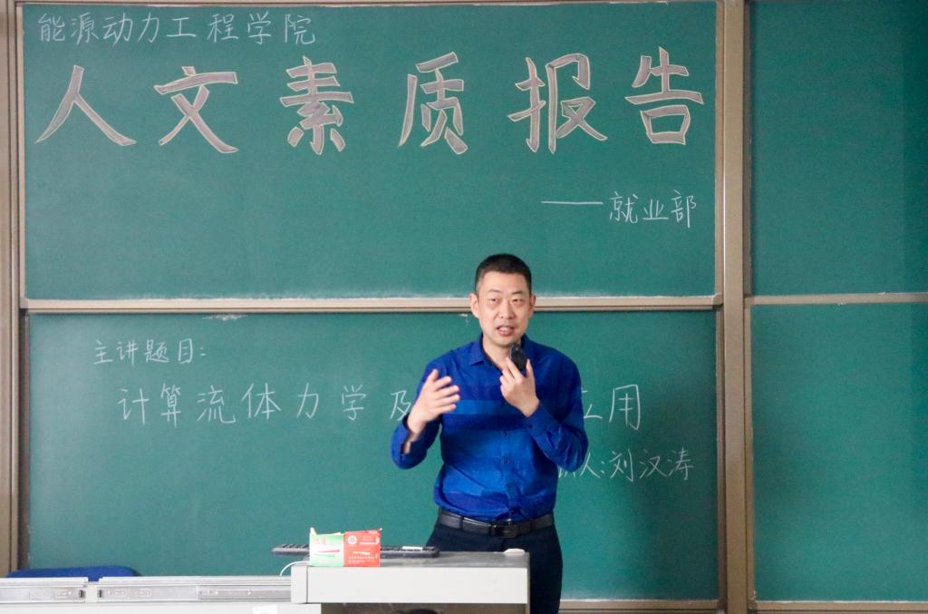 43日下午14:30,能源动力工程学院在15308H教室举办了人文素质报告会,本次人文素质报告会邀请了能源动力工程学院院长刘汉涛教授,为大家讲授了计算流体力学工程应用方面专业知识。学院近百名学生奔赴讲堂,聆听了本次报告。