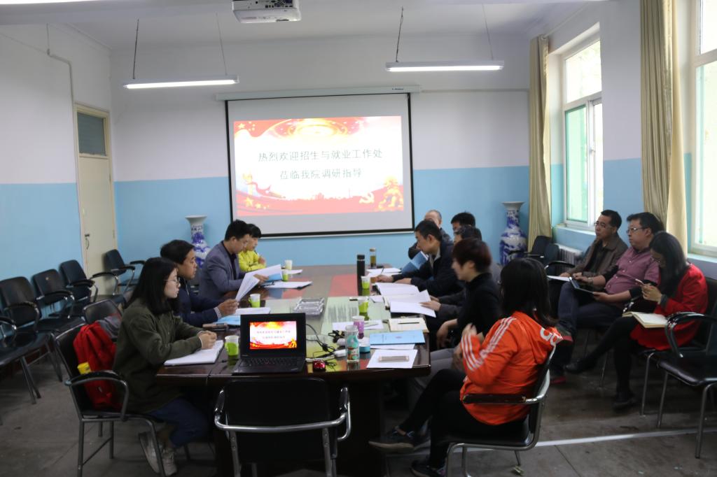 2018年招生工作顺利进行,稳步推进各专业间平衡发展,合理编制专业招生计划,进一步做好招生宣传工作,招生就业工作处副处长宋旭东老师、办公室主任安美荣老师、招生办主任辛振东老师一行3人,于2018年4月18日上午8:30,来到能源动力工程学院进行走访、调研。能源动力工程学院院长刘汉涛老师、院党委副书记兼副院长赵永娟老师、副院长张翼老师以及各学科部负责人出席了本次座谈会。