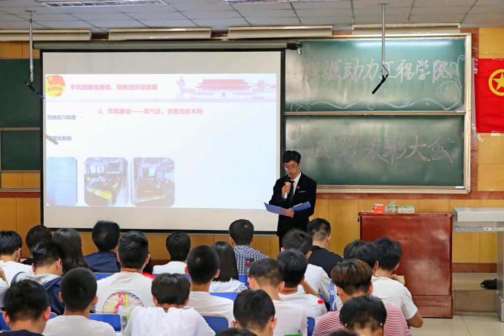 团委工作的情况和取得的成就。随后,院党委副书记兼副院长赵永娟老师宣读了此次大会受表彰的集体和个人名单。其中,获奖的优秀团支部和个人展示了他们靓丽的风采和优秀的表现,给青年树立了榜样,激励着青年向标兵看起,做杰出共产主义青年。之后,同学们观看五四表彰视频,在榜样的力量中感受和传递五四精神。并且,五四红旗团支部和十佳团日活动团支部就团支部的各个方面工作展现了团日活动的开展情况和团支部的建设以及所取得的成就。在充满激情与斗志的氛围中,院团委副书记王敏妍带领同学们重温了入团誓词。最后,校团委副书记刘玉巍老师进行了总结讲话。她向能动学院的同学们表达了节日的祝福,肯定了能动学院团委工作的成就,并向av在线看
