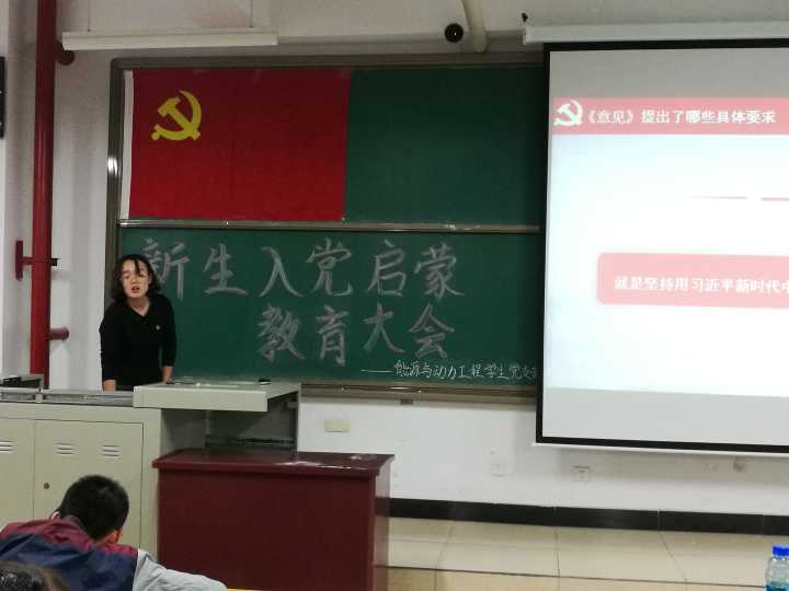 2018年9月25日下午四点三十分,能源与动力工程党支部全体党员在15016H召开了新生入党启蒙大会和“新时代新担当新作为”主题党日活动,全体能源与动力工程专业大一新生到场参加,本次会议由羊光耀同志负责主持。