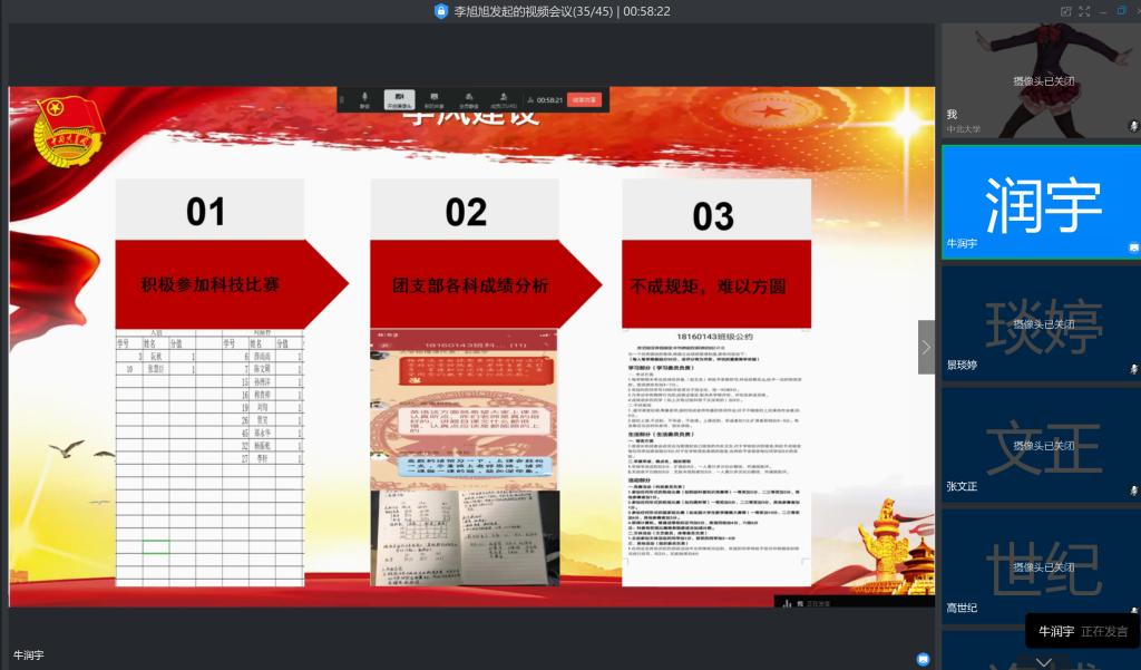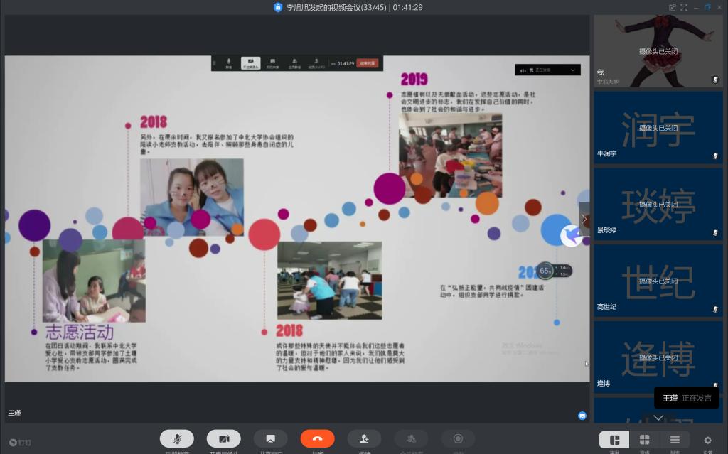 疫情拉长了彼此的距离,但炙热的心却紧紧相连。本次线上答辩会不仅是对各团支部、团干、团员青年的工作考核,也创造了工作交流和学习的平台,更彰显出了能动学子勤奋务实,工作认真的态度,希望能动学子在今后的学习和工作中更加努力进取,各团支部创建支部特色,彰显青年活力。