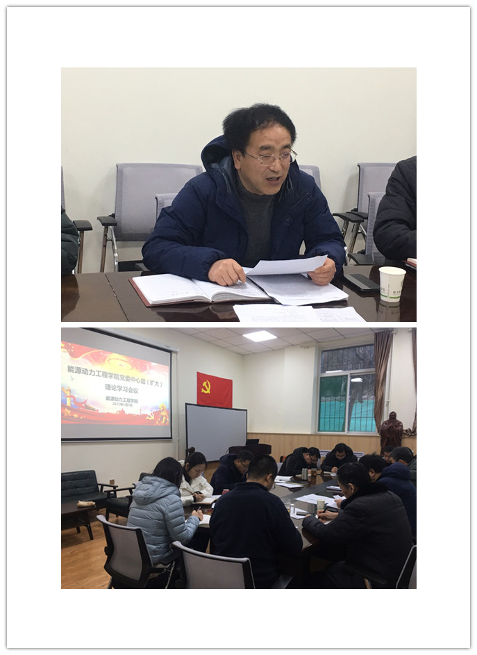 为深入学习习近平新时代中国特色社会主义思想,贯彻落实党的十九大和十九届二中、三中、四中、五中全会精神,全面贯彻落实新时代党的建设总要求和党的教育方针, 1月5日下午16:30,能源动力工程学院在诚学楼118会议室召开党委中心组(扩大)理论学习会议。会议由学院党委书记李运芝主持,院领导班子成员、党委委员、各支部书记和委员参加了此次会议。