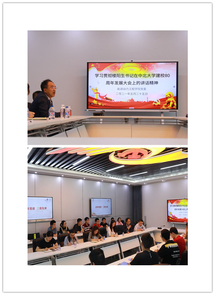 建校80周年发展大会上的讲话精神。李书记指出,我们要传承“太行精神”红色基因,落实立德树人根本任务。全体党员要做到学史明理、学史增信、学史崇德、学史力行,通过学党史,悟思想、忆初心、担使命,立足自身工作岗位,履职尽责,发挥党员先锋模范作用,为党育人、为国育才。大家纷纷表示,楼阳生书记的讲话既是对我们的激励,也是一种鞭策。我们要锚定“双一流”目标,鼓足干事创业劲头,努力向着“双一流”大学目标迈进;我们要与时代同向同行、同心同力、不辱使命、潜心教学、专心科研、专注创新。
