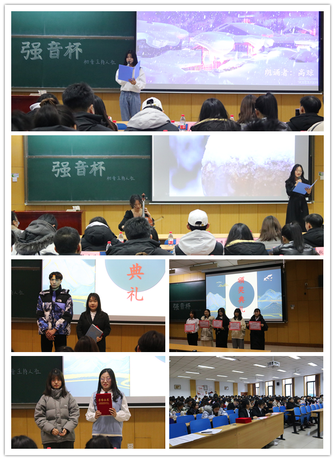 经过十六位选手的激烈比拼,工作人员们在努力计算选手们的最终分数,在此之前,主持人与在场观众们进行了一场有趣的知识问答,为我们缓解了等待过程中的苦闷。终于,激动人心的时刻来临,最终成绩揭晓,许宴育荣获一等奖,徐家莹荣获二等奖,孙伊凡荣获三等奖,刘艳贺、吕鑫、赵璇获得三等奖,秦鹏慧、张晓尧、渠颖、杨艺薇、王丽莎获得最具特色奖,高琼、田步坤、杨恺萱、路玥获得最佳表现奖。本次比赛中各位选手展现的风采,令我们敬佩不已。最后,在热烈的掌声,本次比赛落下帷幕。