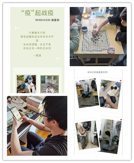 “WO”的抗疫瞬间。树露新芽,百花绽放,阵阵馨香在校园飘扬,任何事物都无法遮挡我们发现美的眼睛。活动中,同学们拿起相机纷纷记录的当下的校园生活,同时将校园内、宿舍内、楼内发生的趣事拍摄下来,留下疫情期间的美好瞬间。