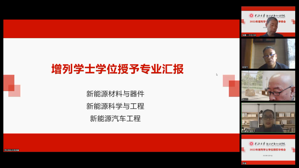 召开新能源科学与工程、新能源材料与器件以及新能源汽车工程三个专业学士学位授权审核工作会议。专家组由山西工程技术学院副院长王建梅教授、北京理工大学杨文教授、天津工业大学时志强教授、山西大学靳智平教授、苏州大学吴玺教授、太原理工大学张翠平教授、太原科技大学连晋毅教授组成。av在线看