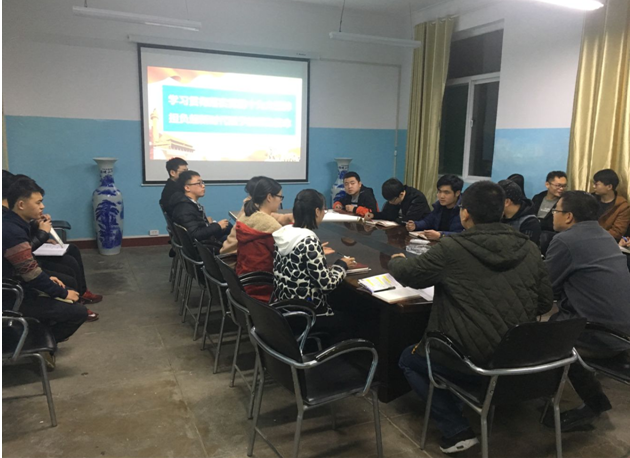 2017年11月15日19:00,能源动力工程学院研究生学生党支部在诚学楼201会议室召开十九大精神学习会议,会议由支部书记王军老师主持,全体研究生党员出席,第一期发展对象及积极分子列席。