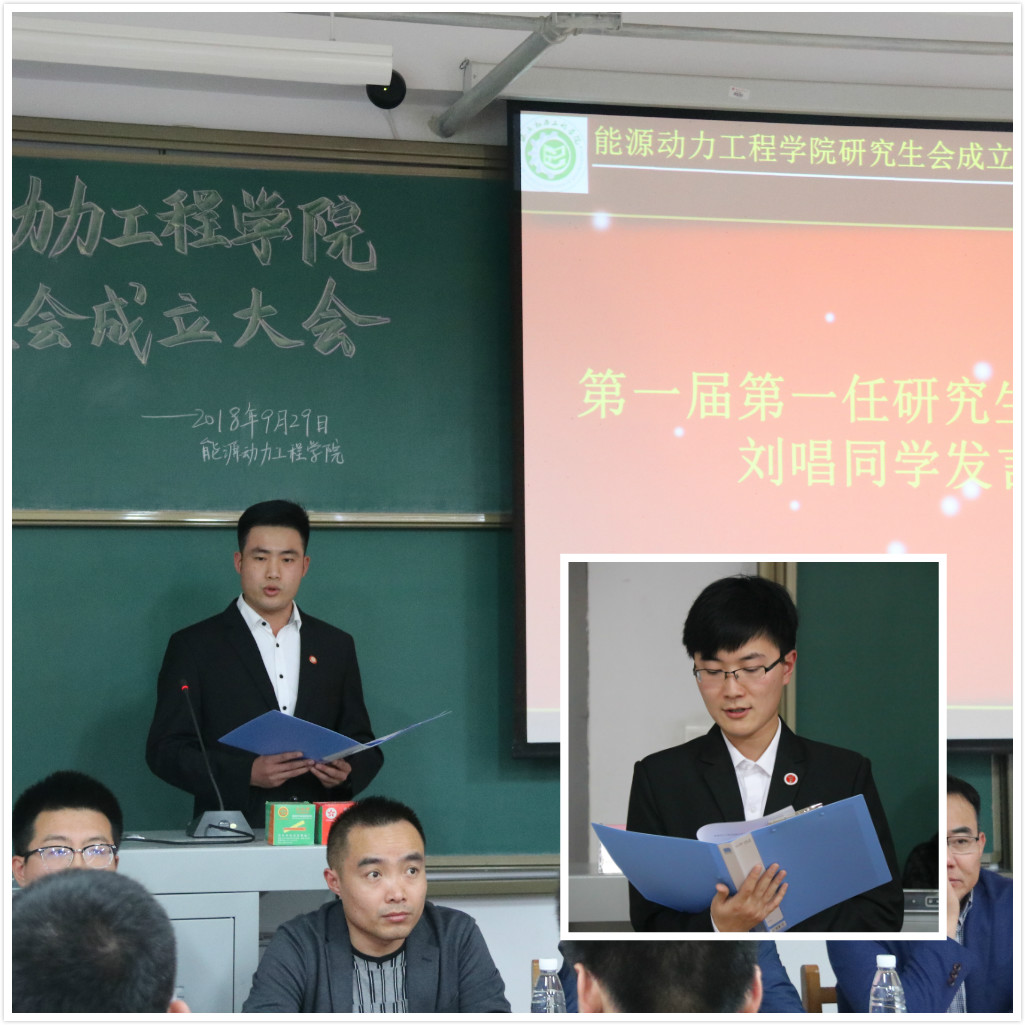 大会伊始,胡胜亮教授宣读了成立能源动力工程学院研究生会的决定,并指出研会工作对同学们各方面的能力提升的重要性。李俊华书记宣读了第一届第一任研究生会干部名单,并为他们颁发聘书。赵家骏同学也代表研究生院院会全体成员对能动学院研会的成立表示祝贺。