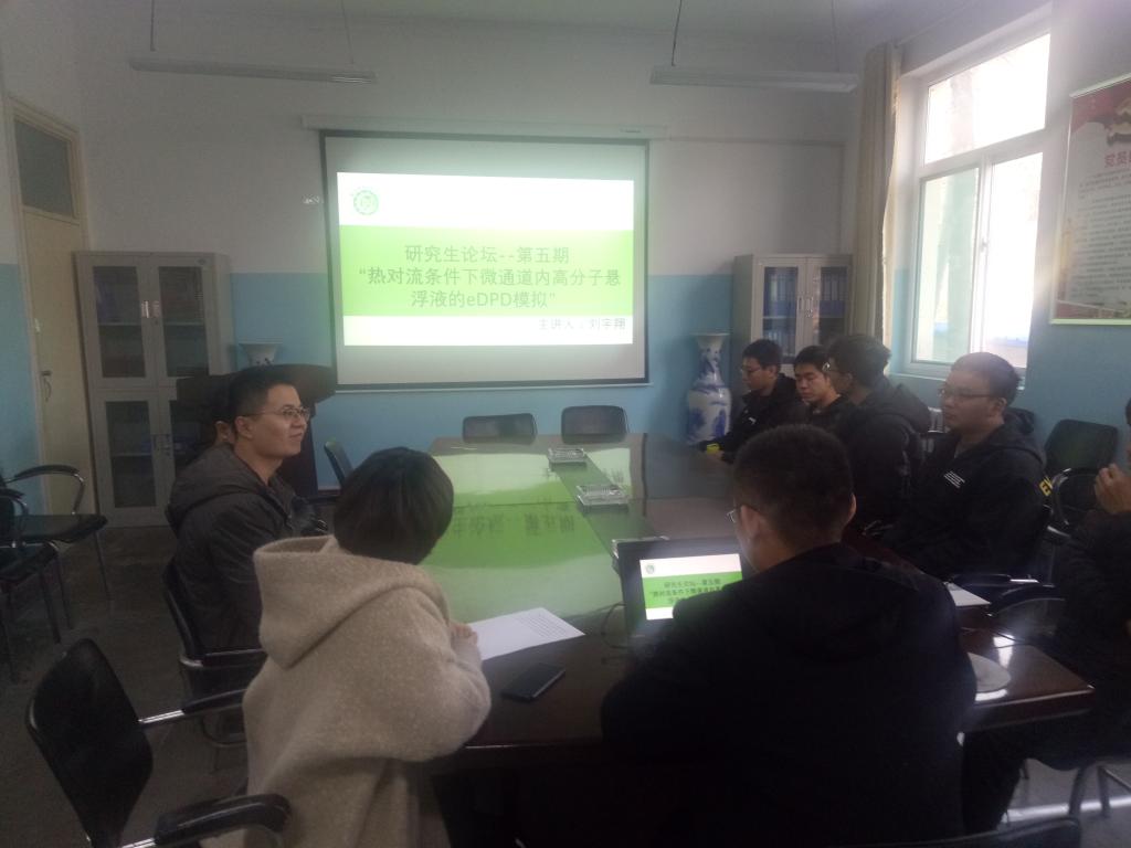 机械工程在读研究生刘宇翔,主题是能量守恒耗散粒子动力学(eDPD)的相关概念及理论和微通道内高分子悬浮液模拟结果与讨论。论坛由辅导员祁亚萍老师主持,av在线看