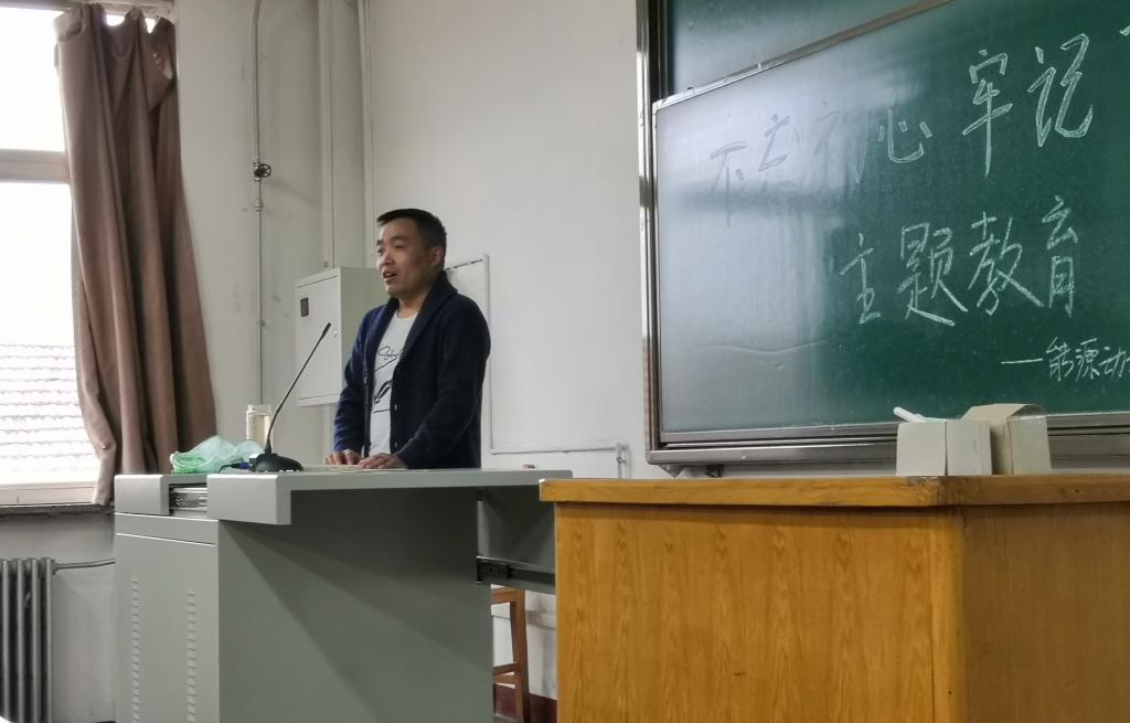 胡胜亮副院长从两部分给学生们进行讲解。第一部分是代表党支部对“不忘初心、牢记使命”主题教育活动重要意义的认识与大家进行了分享。带领大家认真学习习近平总书记在“不忘初心、牢记使命”主题教育工作会上的重要讲话精神,“中国共产党人的初心和使命,就是为中国人民谋幸福,为中华民族谋复兴。”他强调,作为一名研究生,我们应该勇担责任,要时刻将初心和使命与平时的科研结合起来,把指示精神融入到具体事情上来。