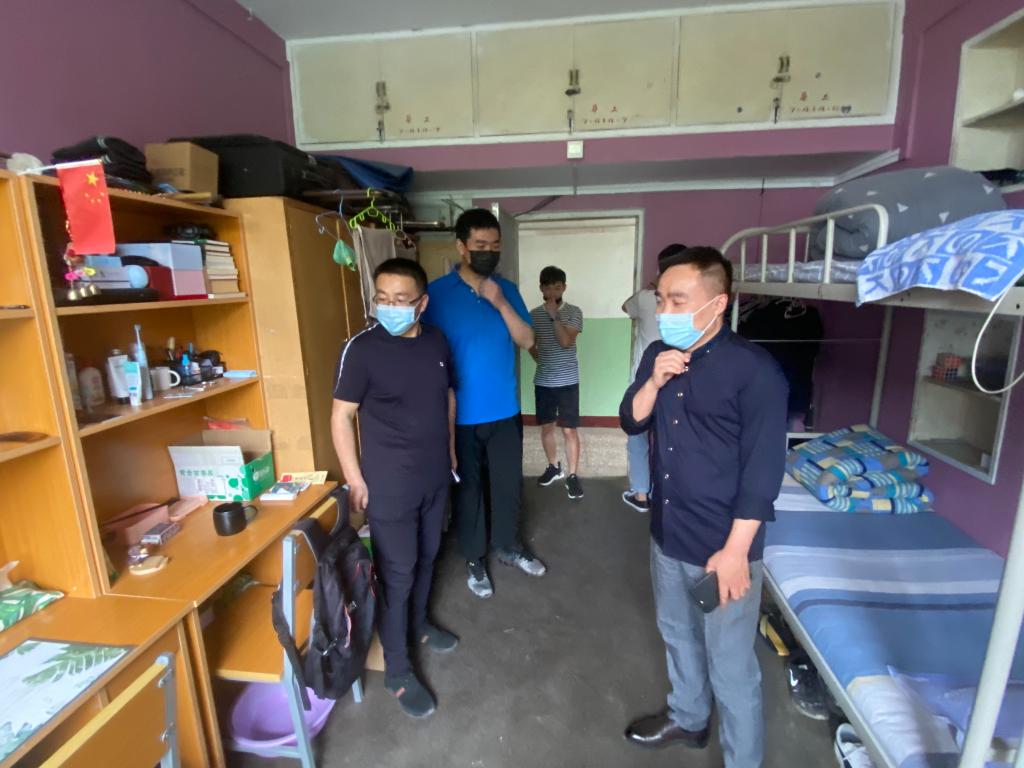 为及时了解研究生返校后的生活情况,确保疫情防控工作落到实处,2020年6月9日下午,能源动力工程学院党委副书记任雁、副院长胡胜亮、科研与学科建设科科长王军和辅导员祁亚萍一行4人来到宿舍进行走访和安全检查。