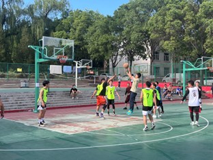 在西区篮球场举办了欢送毕业生篮球比赛。此次比赛有教师队和研究生队等共4支队伍参加。