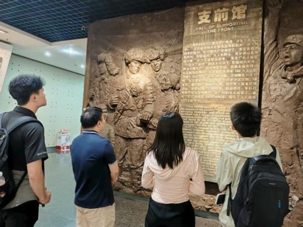 走进院内,师生党员们参观了复原的指挥室场景,观看室内陈列的战略地图、发报机及批示电文复刻件。旧址管理人员详细介绍了当年的战争环境,将领们以炕桌为案、草席作床,让大家深刻感受到在物质匮乏年代里共产党员所淬炼出的钢铁意志。这座“小村庄里的指挥中枢”,用土炕上的电文与院落里的硝烟记忆,铸就了“平凡之地扭转乾坤”的战争奇迹。全体成员在历史实景中体悟到“小米铁血,陋室决胜”的坚定信念与斗争智慧,完成了一堂震撼心灵的红色思政课。