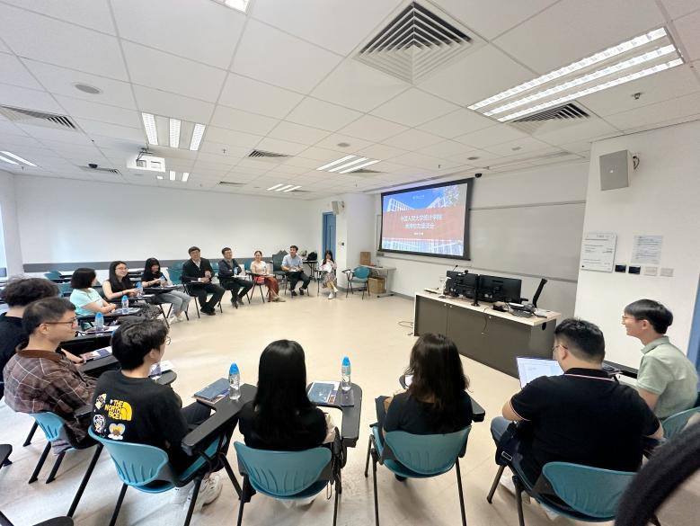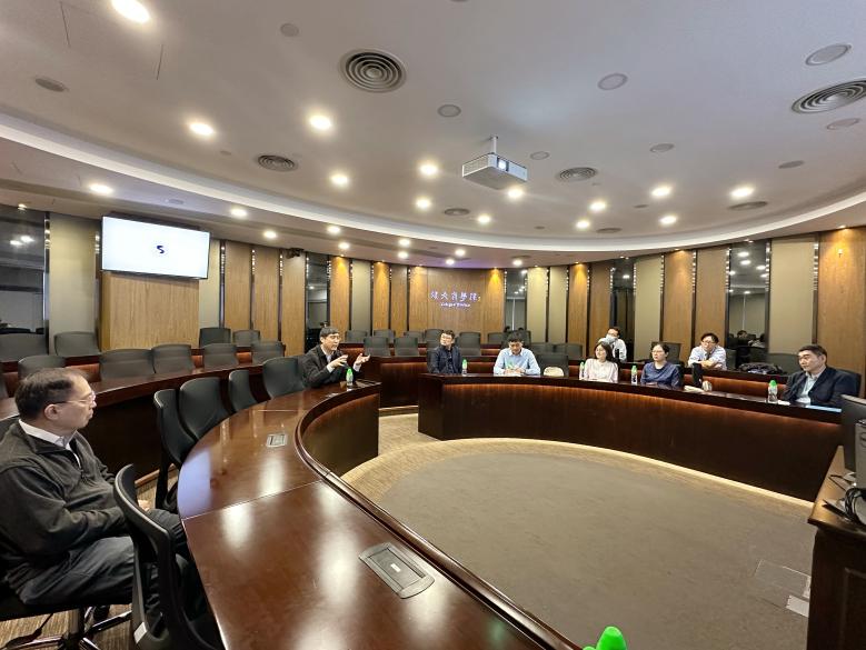 代表团一行访问了香港中文大学统计学系,与统计学系系主任王军辉及宋心远、樊晓丹、林志翔、戴奔、黄建华等相关人员进行座谈。双方不仅交流了各自在教学、科研、国际合作等方面的丰硕成果,还就研究生联合培养、师生互访、科研合作等多个领域的合作意向进行展望规划,旨在促进人才联动培养、加强师资交流、推动科研项目协同共进。