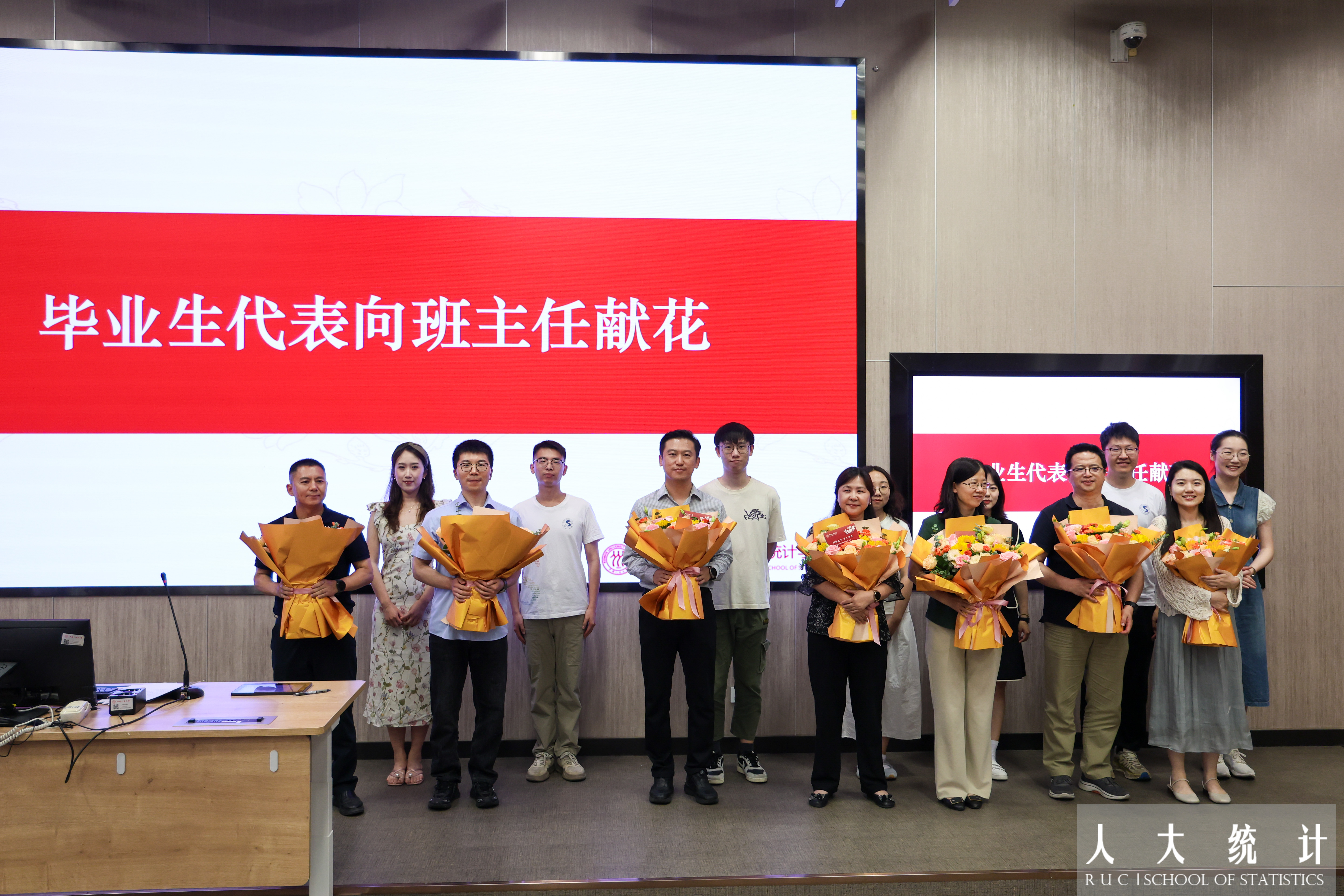 7位毕业班班主任来到大会现场,与毕业生们共同度过温馨时刻。毕业生代表为班主任老师献花,为辛勤付出的师长献上最真挚的祝福。