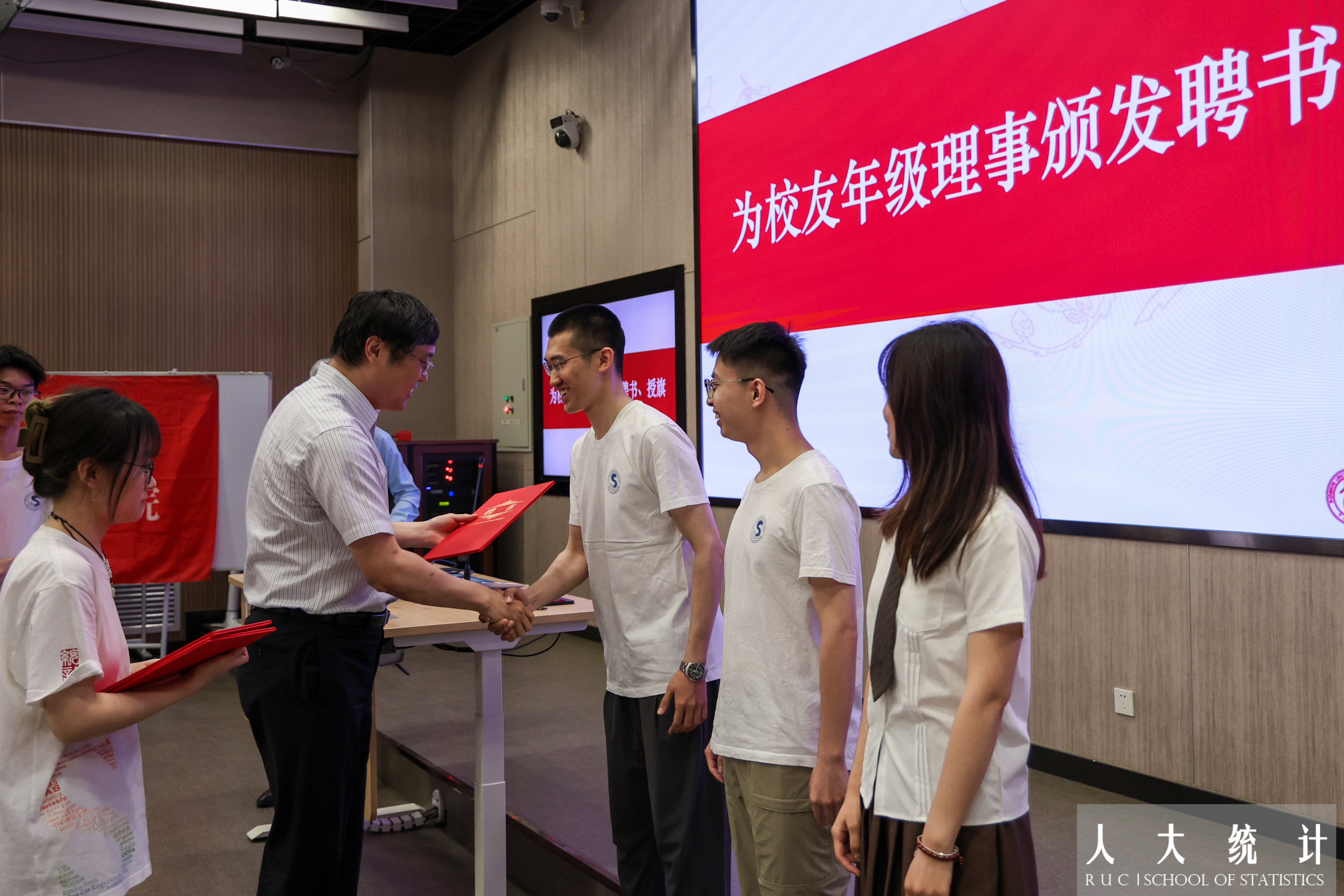 2025年,av在线看 共聘任班级联络人15名,校友年级工作理事3名,他们将肩负起沟通联络、凝聚校友的重任。李扬为校友年级理事颁发聘书并授旗。