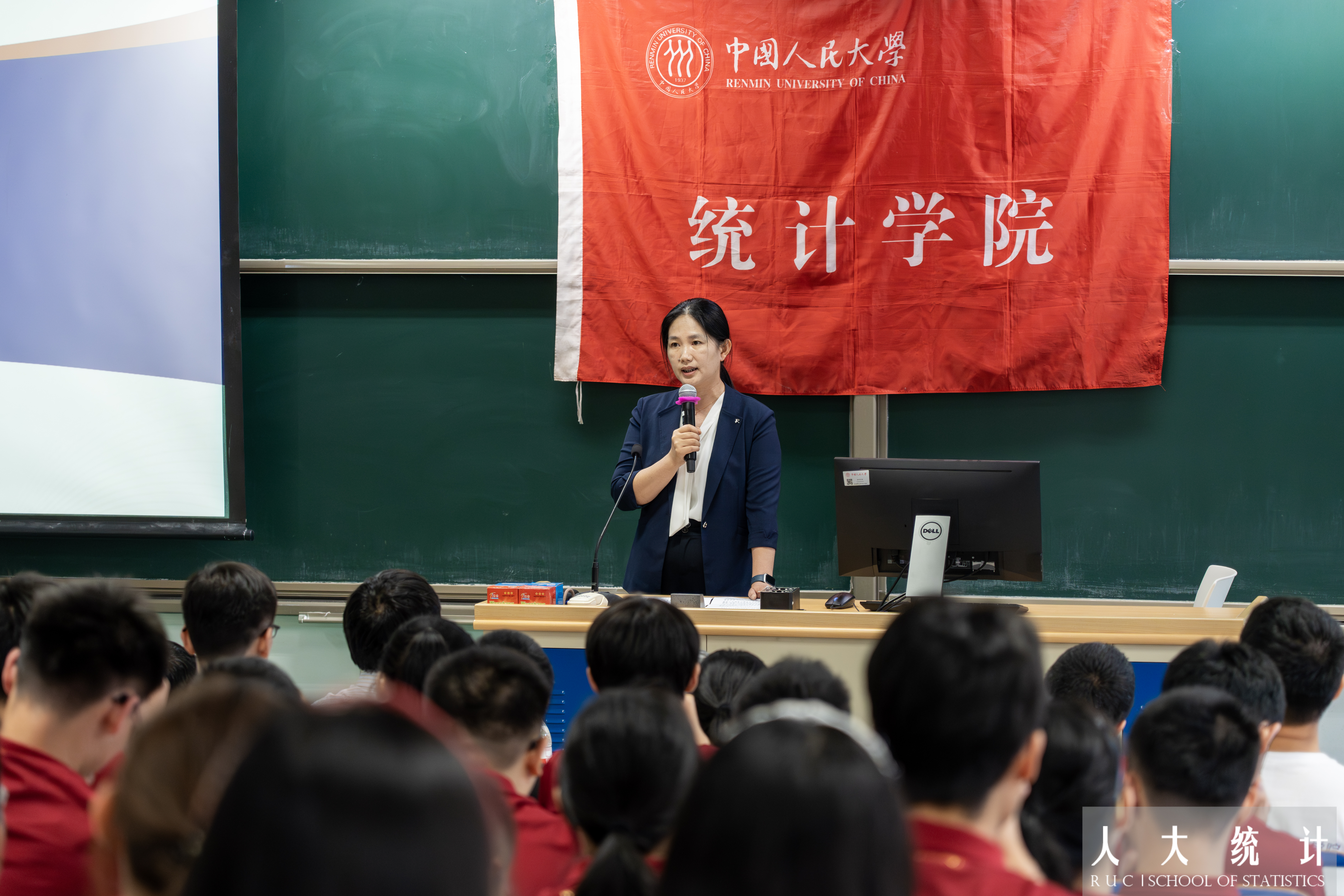 教师代表、风险管理与精算系主任肖争艳向新生介绍了统计学科在精算领域的运用,阐释了精算是用数学语言解读未来不确定性的科学本质。她温情寄语新生,应当保持严谨、坚持客观与正确,以灵活应变的态度、始终饱满的热情拥抱挑战。
