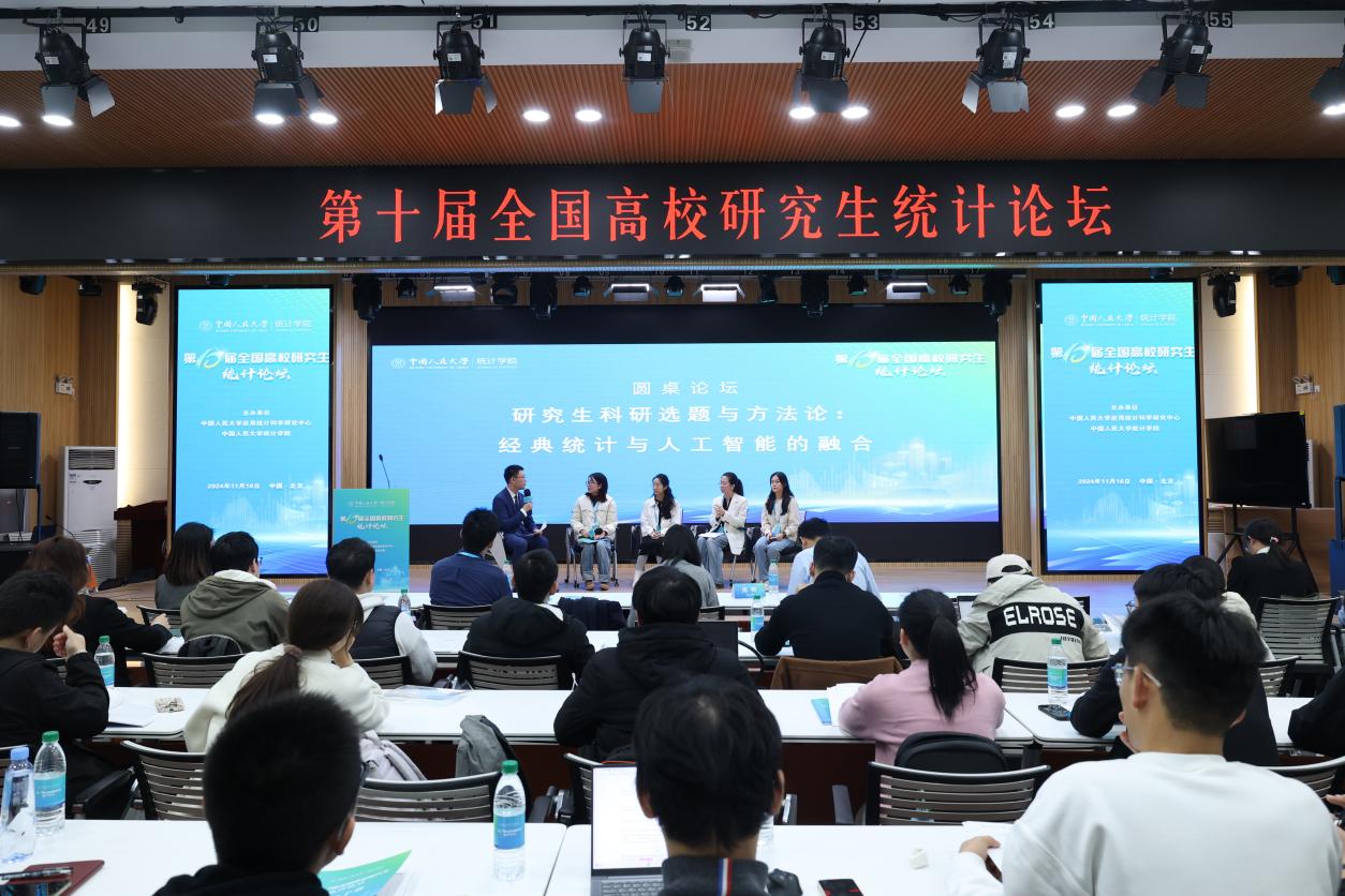 论坛上,研究生们以“研究生科研选题与方法论:经典统计与人工智能的融合”为主题,开展圆桌讨论,深入探讨在当今人工智能迅速发展的时代,统计相关学科研究生当如何探索利用统计学经典理论推动人工智能的发展,同时充分利用人工智能技术革新统计学方法,为高校统计相关学科研究生培养工作拓宽了思路。