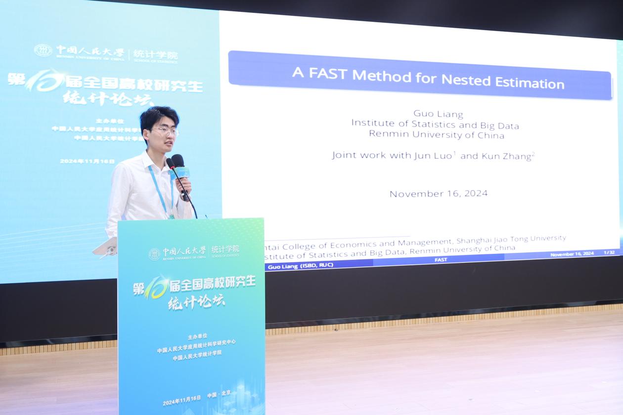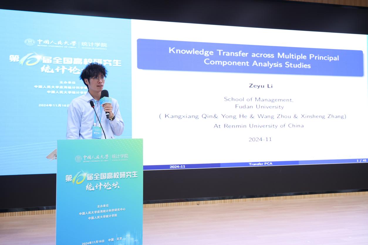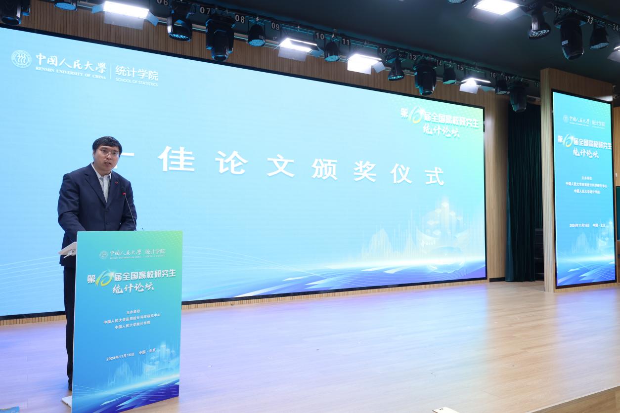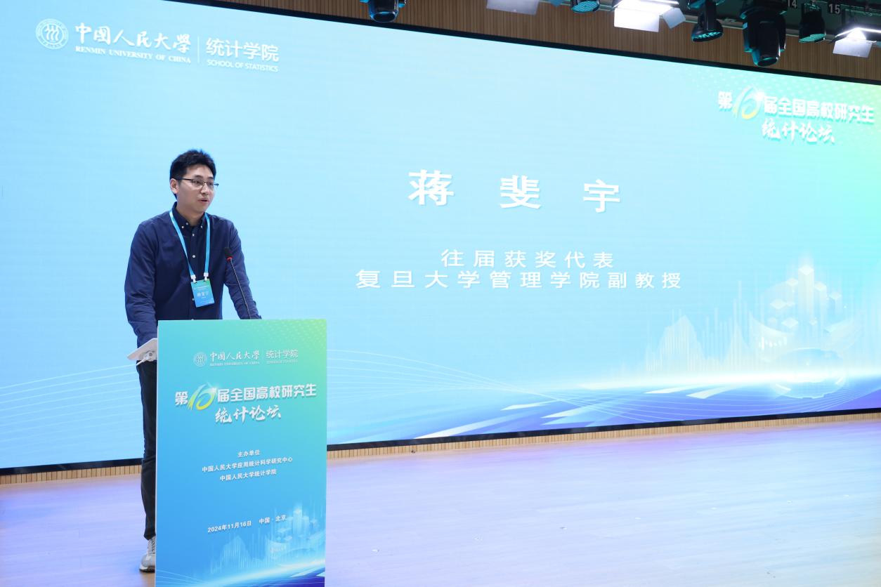 第六届全国高校研究生统计论坛“十佳论文”获奖作者、复旦大学管理av在线看 副教授蒋斐宇分享了其学术成长经历。他认为,该论坛不仅是一个展示成果的舞台,更是一个激发创新、促进学术交流的重要平台。他鼓励各校同学们以此为契机建立联系,在交流中获得启发,找到自己热爱的方向,勇敢地去探索未知的领域。