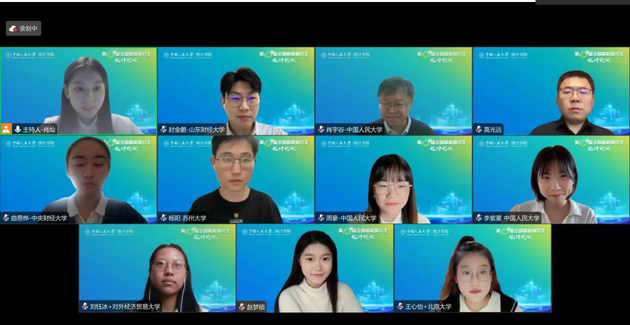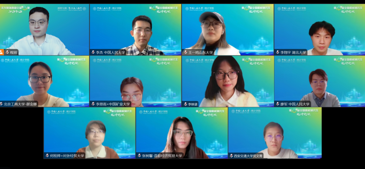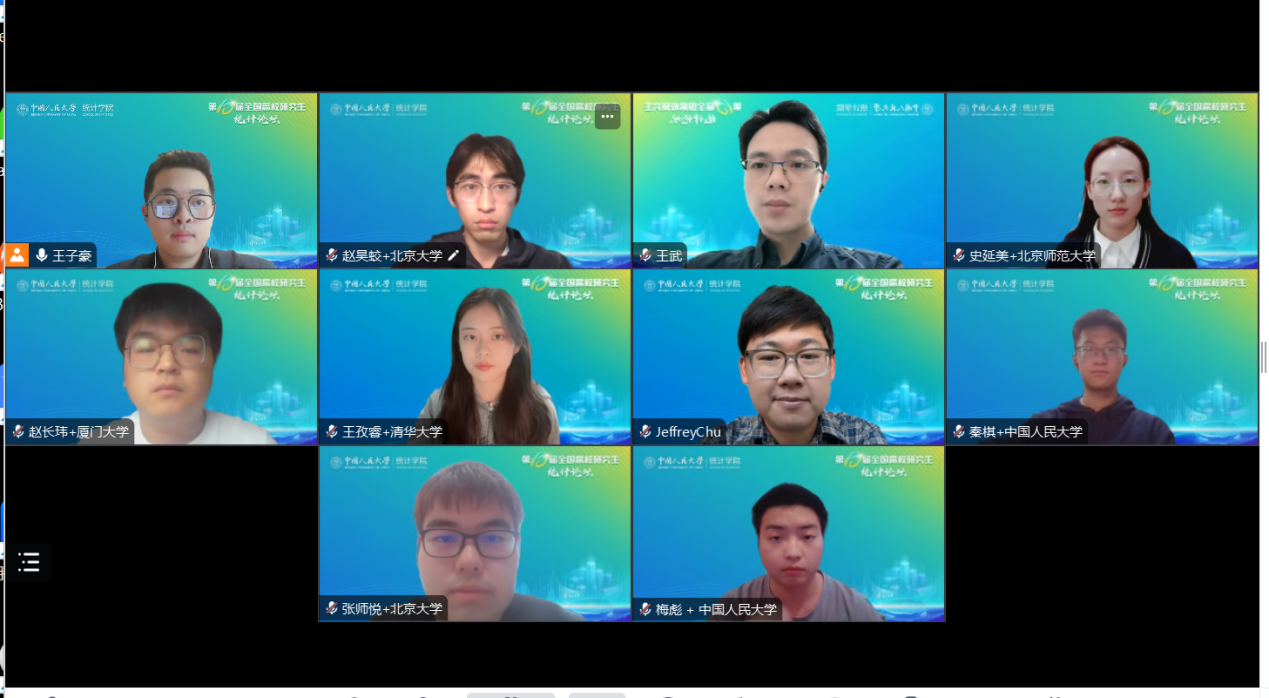 现场互动下午,数理统计、经济社会统计、风险管理与精算、生物统计与流行病学、数据科学与大数据统计分论坛在线上举行。各入选论文作者代表分别进行报告,并与点评老师和其他参会者开展深入热烈的讨论,这一举措有效促进了各高校统计师生的学术交流,为学生提供了高质量的学习成长机会。